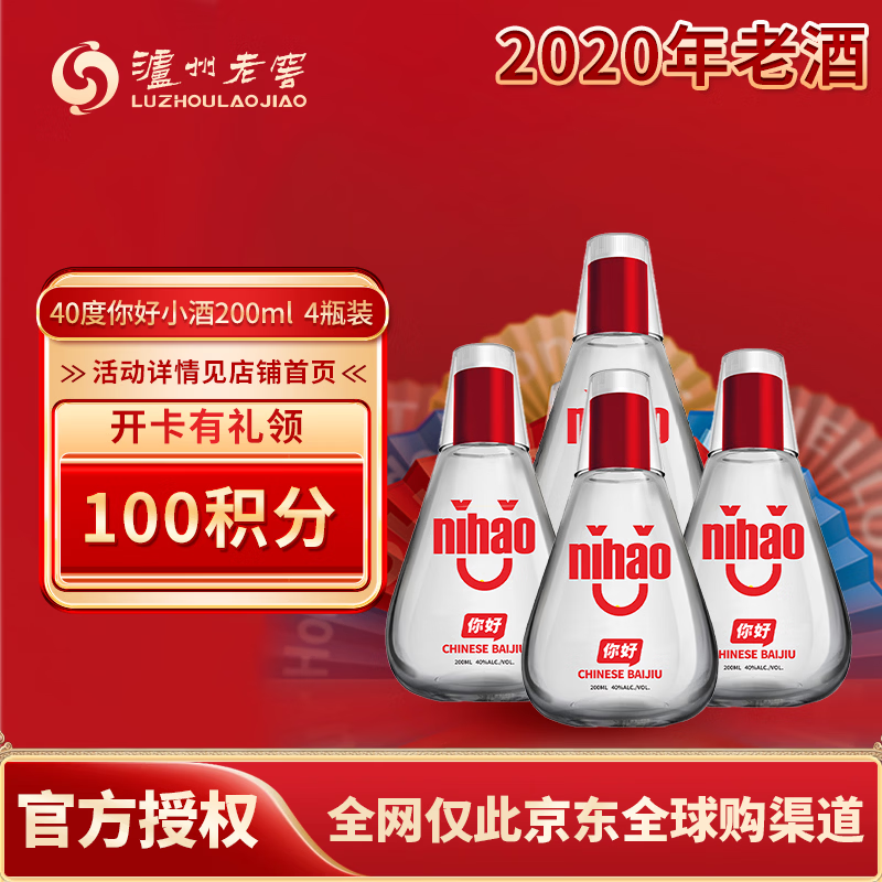 自营泸州老窖 你好小酒 40度 200ml*4 2020年老酒 官方授权