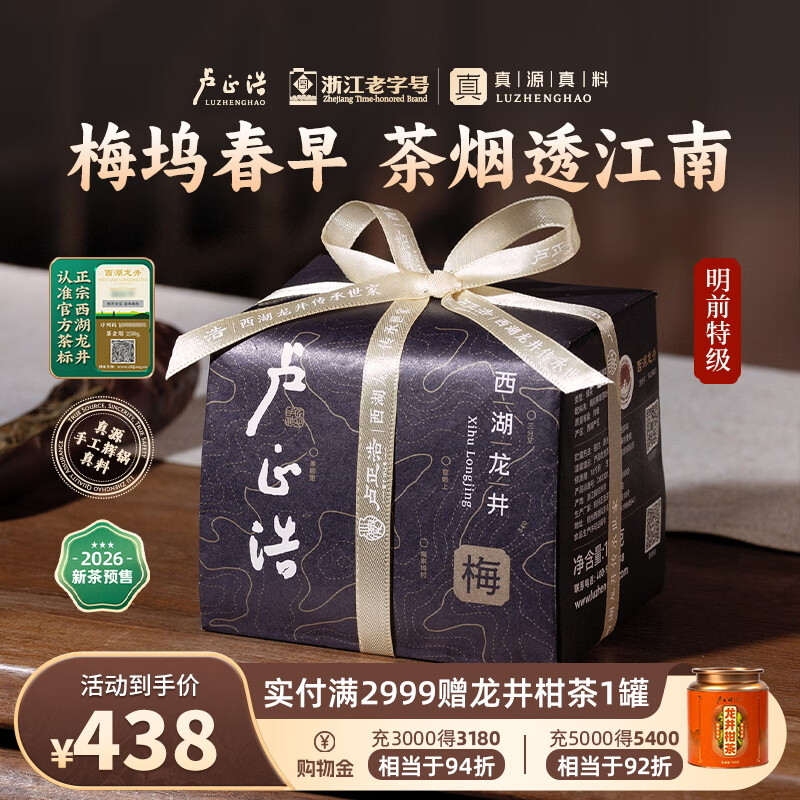 卢正浩绿茶西湖龙井茶特级150g2026新茶预售明前茶叶纸包礼盒源头直发