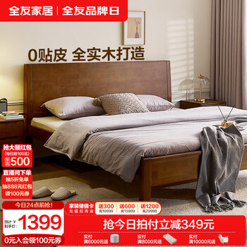 全友家居 胡桃木色实木床多功能床主卧室家具双人大床1.8米x2米婚床 1.5m多功能实木床