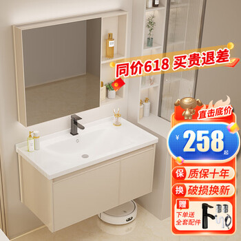 欧帝奴(OUDINU) 奶油风浴室柜陶瓷一体盆智能洗手洗脸盆柜组合铝合金带储物镜柜 60cm 【奶油风】普通镜柜