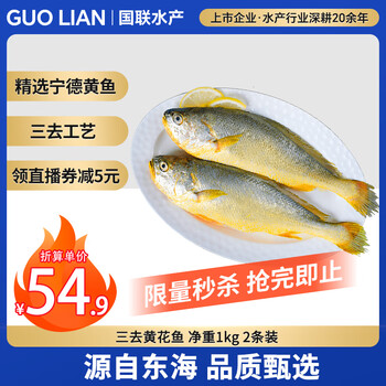 GUO LIAN国联 三去黄花鱼 2斤共2条国产东海大黄鱼 海鲜海产冷冻