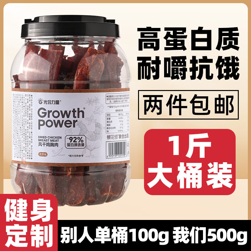 光合力量 风干鸡肉干500g鸡胸肉条干减低解馋脂零食休闲耐吃零食品 孜然味
