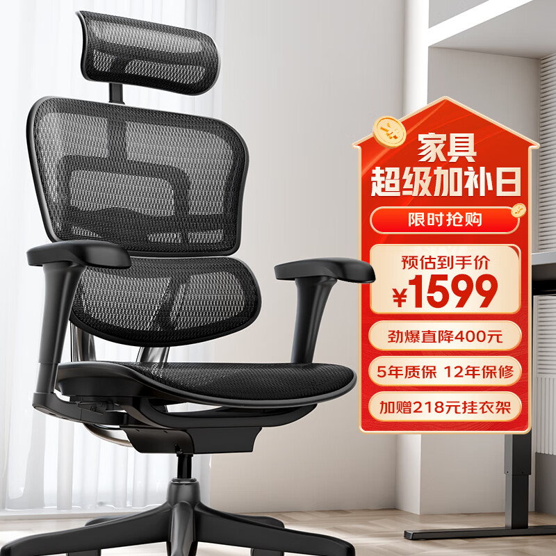 Ergonor保友金豪b2代 人体工学椅电脑椅办公椅子电竞游戏椅 黑色