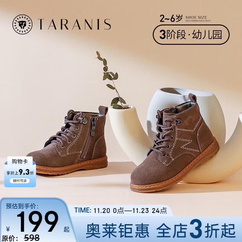泰兰尼斯男女童鞋儿童马丁靴秋季新款蝴蝶结短靴休闲软底小公主童靴 驼色 T04X1C0919 24 内长15.5/适合脚长14.5