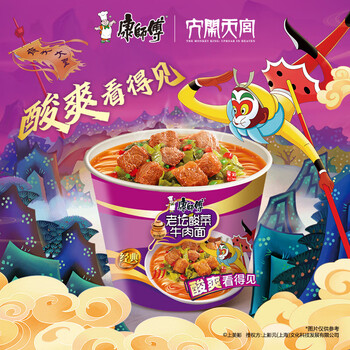 康师傅方便面 经典桶 酸菜牛肉面122g*3桶 泡面桶装速食 方便食品
