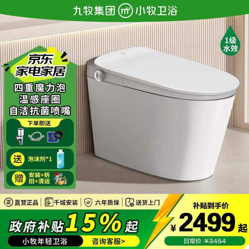 九牧(JOMOO)智能马桶小牧卫浴轻音虹吸式坐便器不限水压即热式清洗全自动 【魔力泡+轻音冲】X5 400mm 【390mm以上选择】
