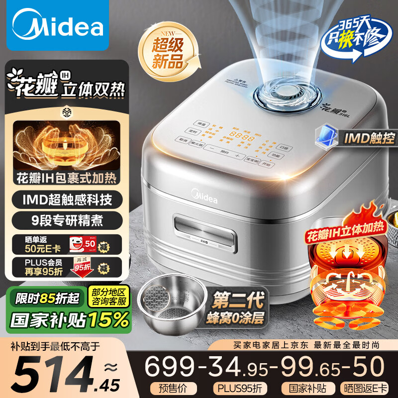 美的电饭煲0涂层花瓣立体IH加热电饭锅 4-5人智能预约家用多功能4升米饭锅MB-40HB2