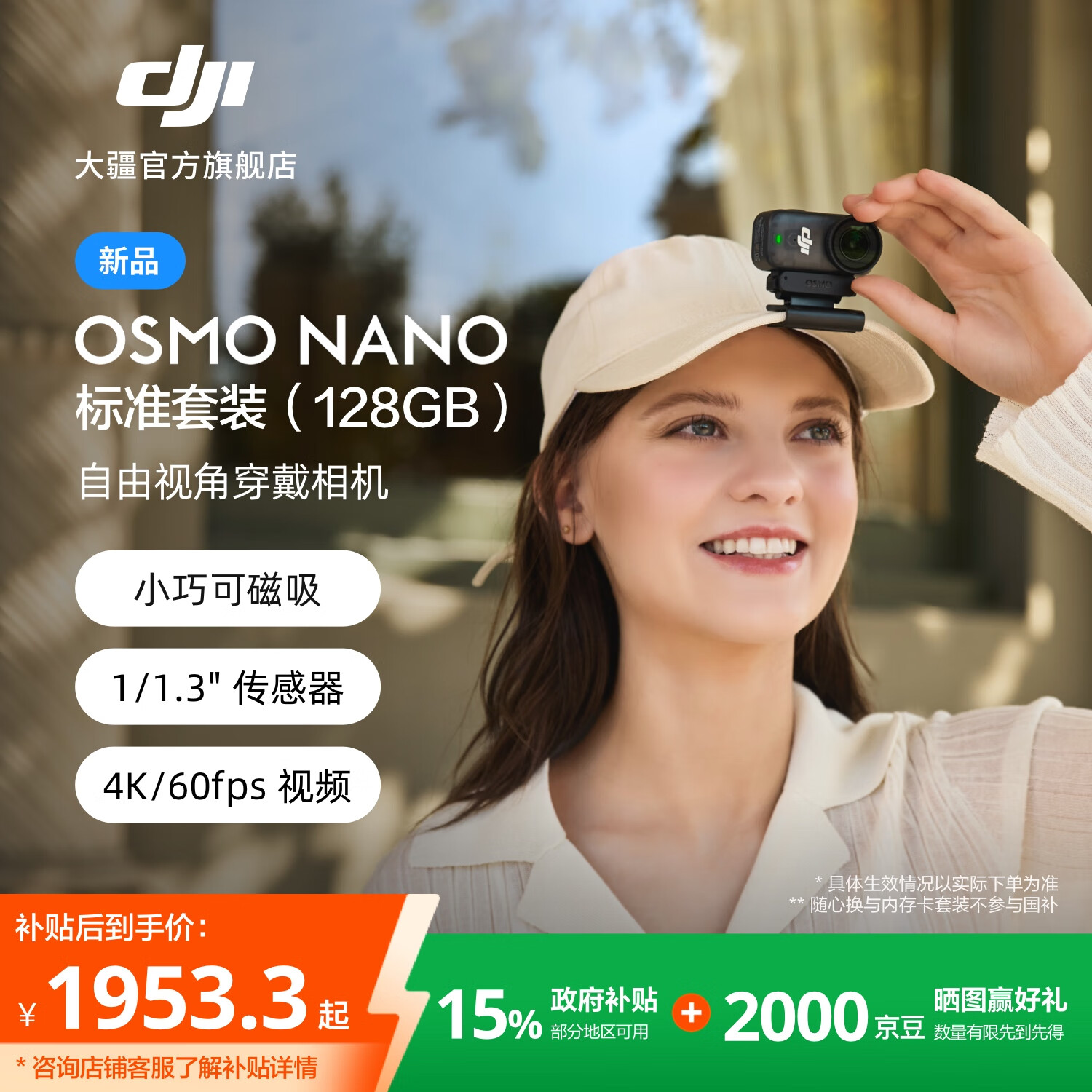 大疆【新品】DJI Osmo Nano 自由视角穿戴相机Vlog骑行亲子宠物运动相机4K高清摄像机超轻小巧拇指相机 标准套装(128GB)