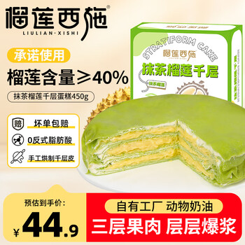 榴莲西施金枕抹茶榴莲千层蛋糕450g甜品零食下午茶蛋糕6英寸冷冻生日蛋糕