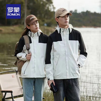 罗蒙(ROMON)男女同款户外休闲冲锋夹克上衣2023秋季新款撞色休闲连帽防风外套 3J162166A白色【男款】 XL