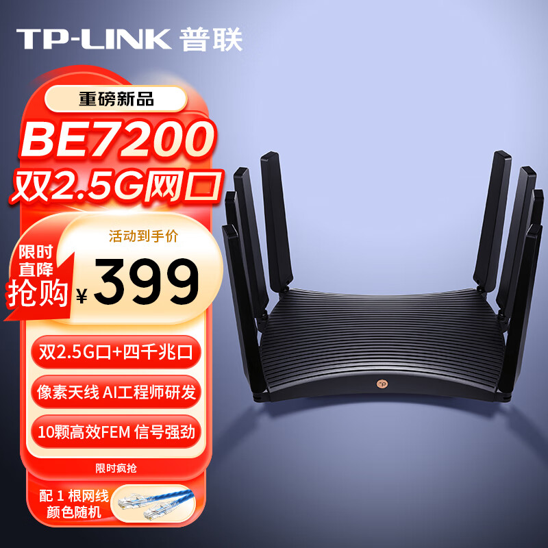 ÆÕÁª£¨TP-LINK£©BE7200 WiFi7ǧÕ×˫ƵÎÞÏß·ÓÉÆ÷ 2.5GÍø¿Ú¼ÒÓô©Ç½7200M ÐźÅÔöÇ¿ ÓÎÏ·¼ÓËÙ ¡¾Ë«2.5GÍø¿Ú¡¿7DR7270