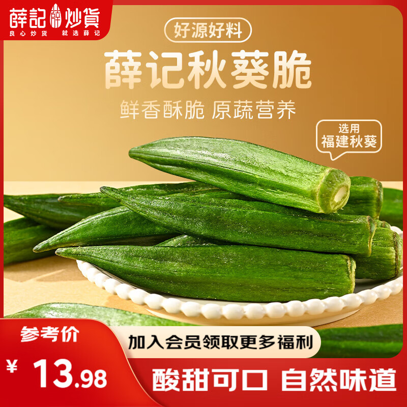 薛记炒货【果干任选】红杏干草莓脆果脯话梅西梅干蜜饯果干组合装休闲零食 秋葵脆40g