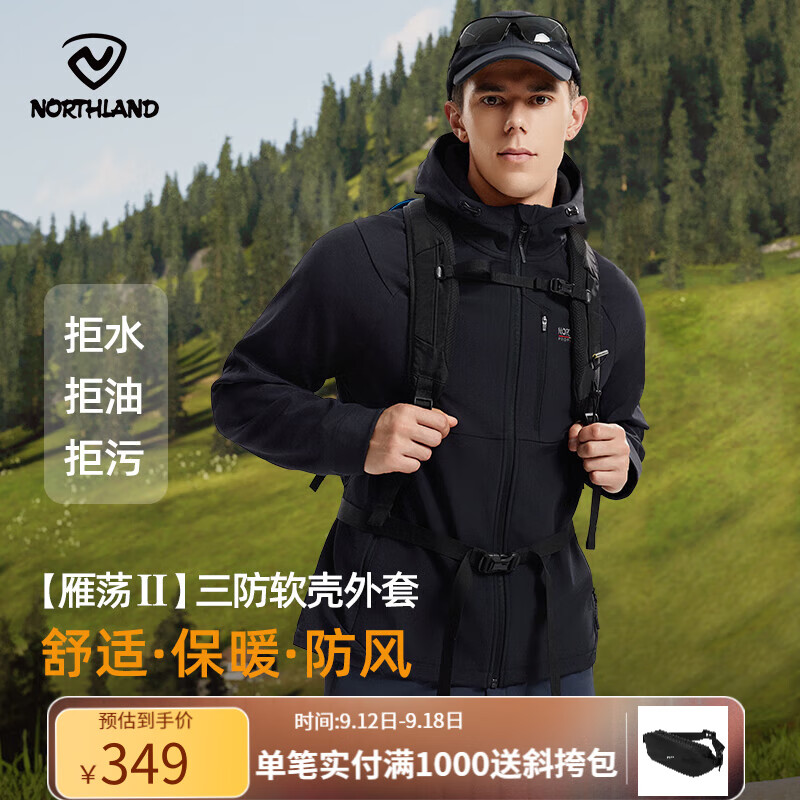诺诗兰 软壳外套男秋季防泼防油防污户外耐磨登山服夹克风雪外套 纯黑色-70E 175