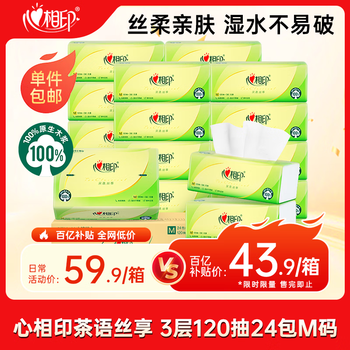 心相印抽纸 【肖战同款】茶语丝享 3层120抽*24包真M码纸巾(整箱销售)