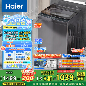 海尔(Haier)波轮洗衣机全自动懒人家用 12公斤大容量 直驱变频 一级能效 家电国家补贴20% 以旧换新BZ20D1
