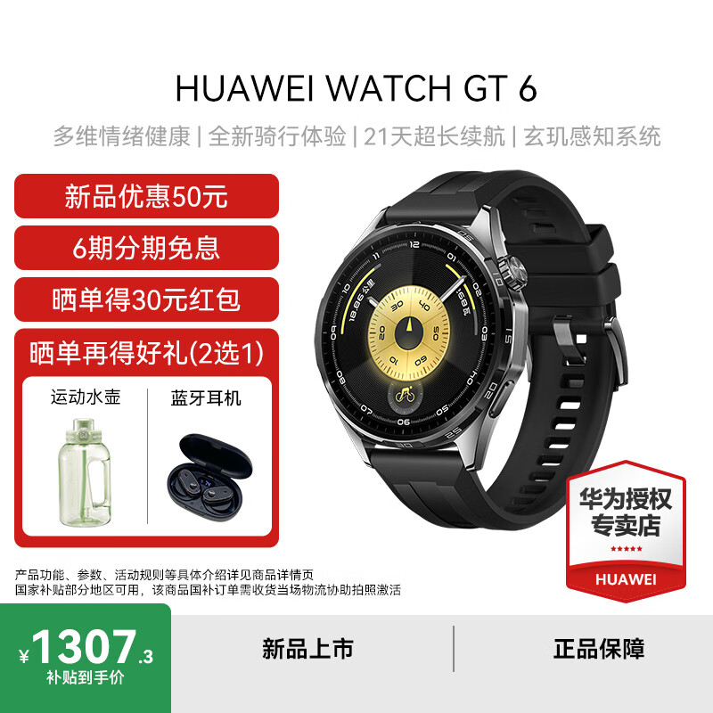 华为手表WATCH GT6运动智能手表多维情绪健康 全新骑行体验 21天超长续航 玄玑感知系统 GT 5 升级 46mm 雅丹黑