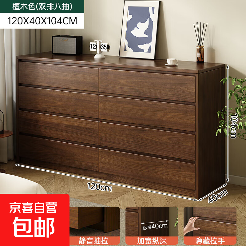 黎木顶斗柜五斗柜简约现代卧室床边柜收纳柜五斗橱抽屉柜子轻奢型 【加长款120CM】 双排八抽-檀木色