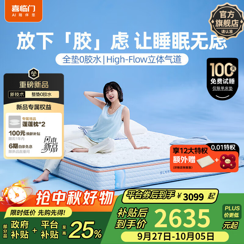 喜临门漾pura舒脊透气家用席梦思漾pros独袋弹簧0胶床垫 漾pura-厚25cm【整垫0胶/睡感可调】 1.8*2米