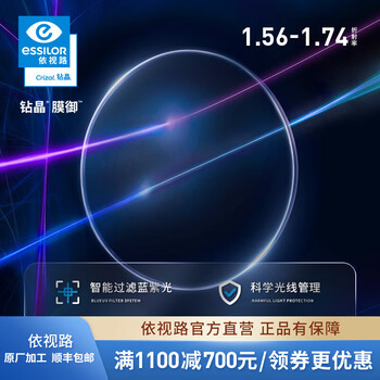 依视路依视路钻晶膜御系列清透防蓝光镜片现片非球面光学近视定制眼镜 现片2片装 来架加工 1.60折射率 推荐400-600度