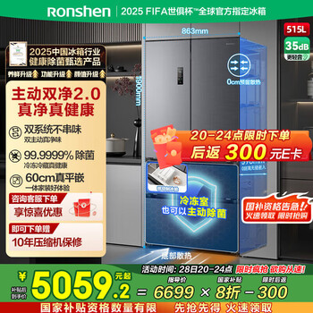 容声方糖515主动双净双系统法式多门四开门超薄嵌入式电冰箱制冰一级能效国家补贴20% BCD-515P60FZMAD灰国家补贴