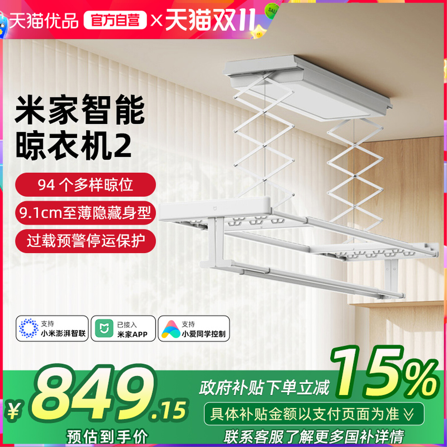 小米米家智能晾衣机2电动晾衣架阳台家用隐形超薄晾衣杆