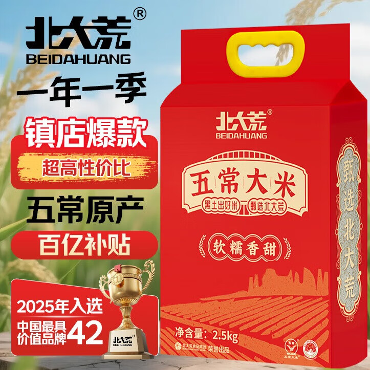 北大荒[当季新米]一年一季 执行19266 五常大米2.5kg/5斤黑龙江东北大米 东北五常大米5斤 2.5kg*1袋