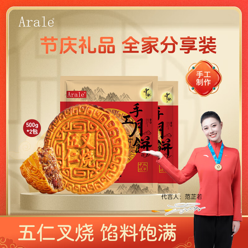 Arale五仁叉烧全家福月饼500g*2广式传统手工糕点中秋节日送礼