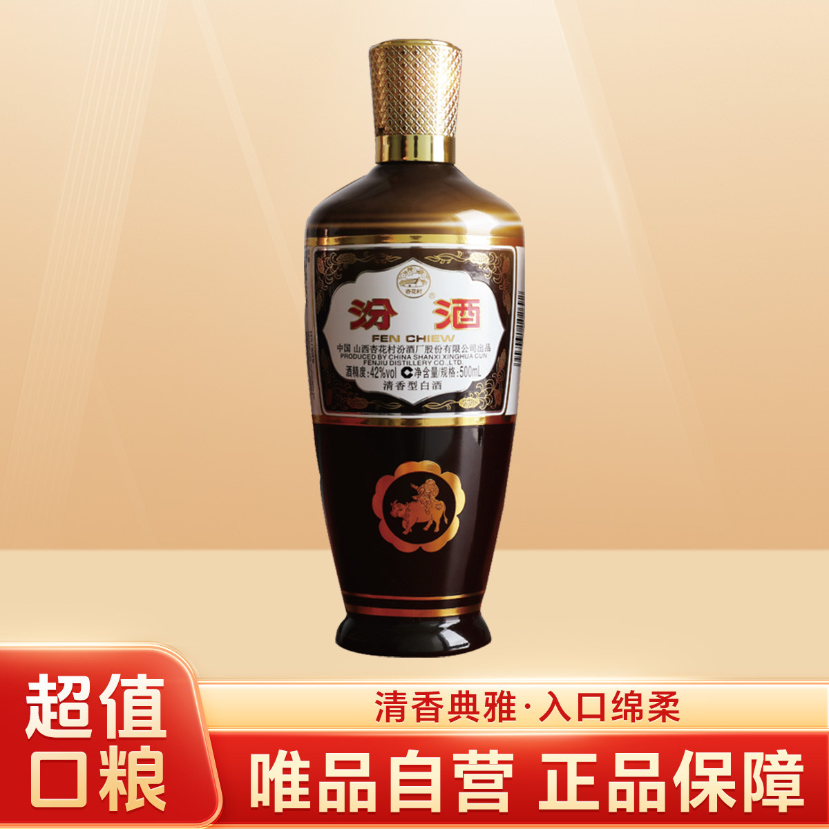 汾酒 出口玻汾 摩登棕42度500ml 清香型白酒 口粮白酒