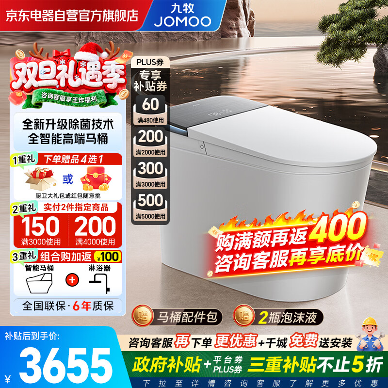 九牧(JOMOO)净界智能马桶家用无水压限制全自动感应翻盖坐便器除菌ZS800I-305