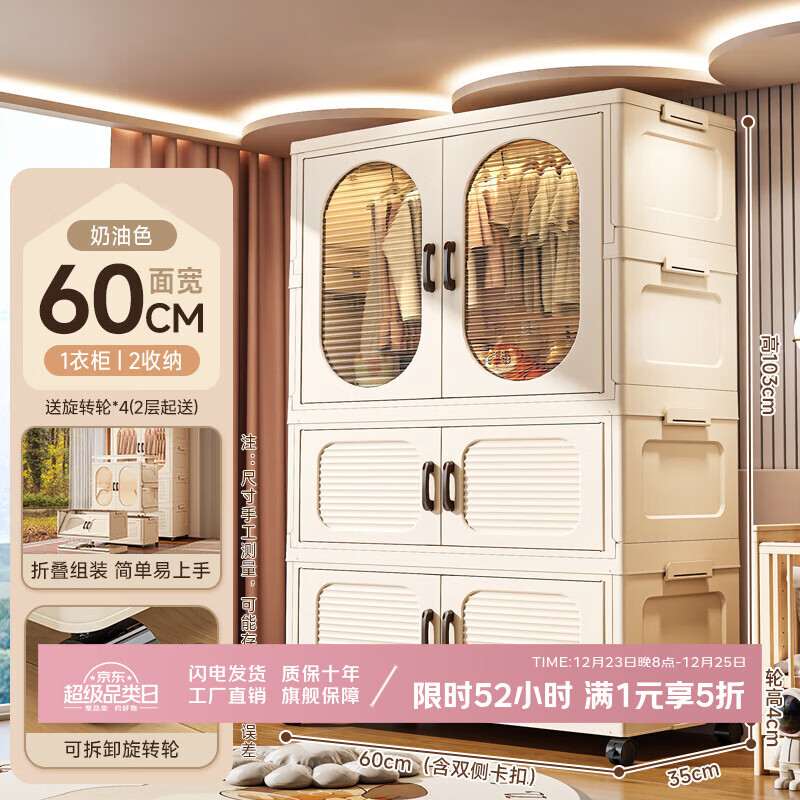 纳份爱儿童衣柜宝宝衣服整理箱婴儿小衣橱塑料家用简易储物收纳柜 60面宽【1衣柜+2收纳箱】 【加厚材质安全无异味】
