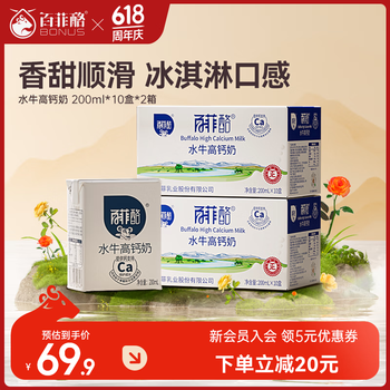 百菲酪水牛高钙奶调制乳 青少年学生成人早餐奶 高钙奶200ml*10盒*2箱