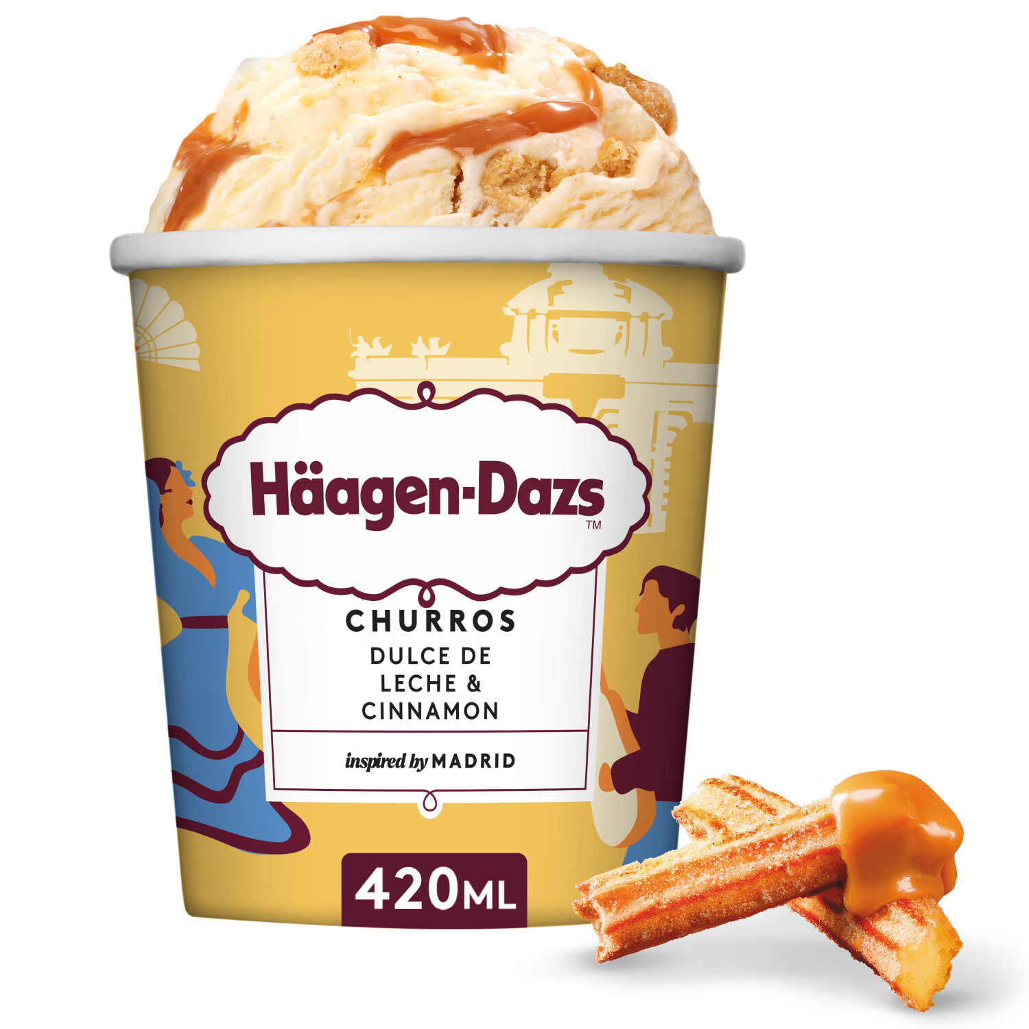 哈根达斯(Haagen-Dazs)吉拿棒风味冰淇淋 420ml 大桶家庭装冰激凌