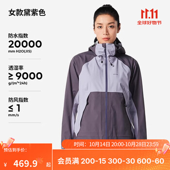 迪卡侬硬壳冲锋衣男女户登山防风防水单层夹克风衣运动外套男 MH500 女-黛紫色 XS