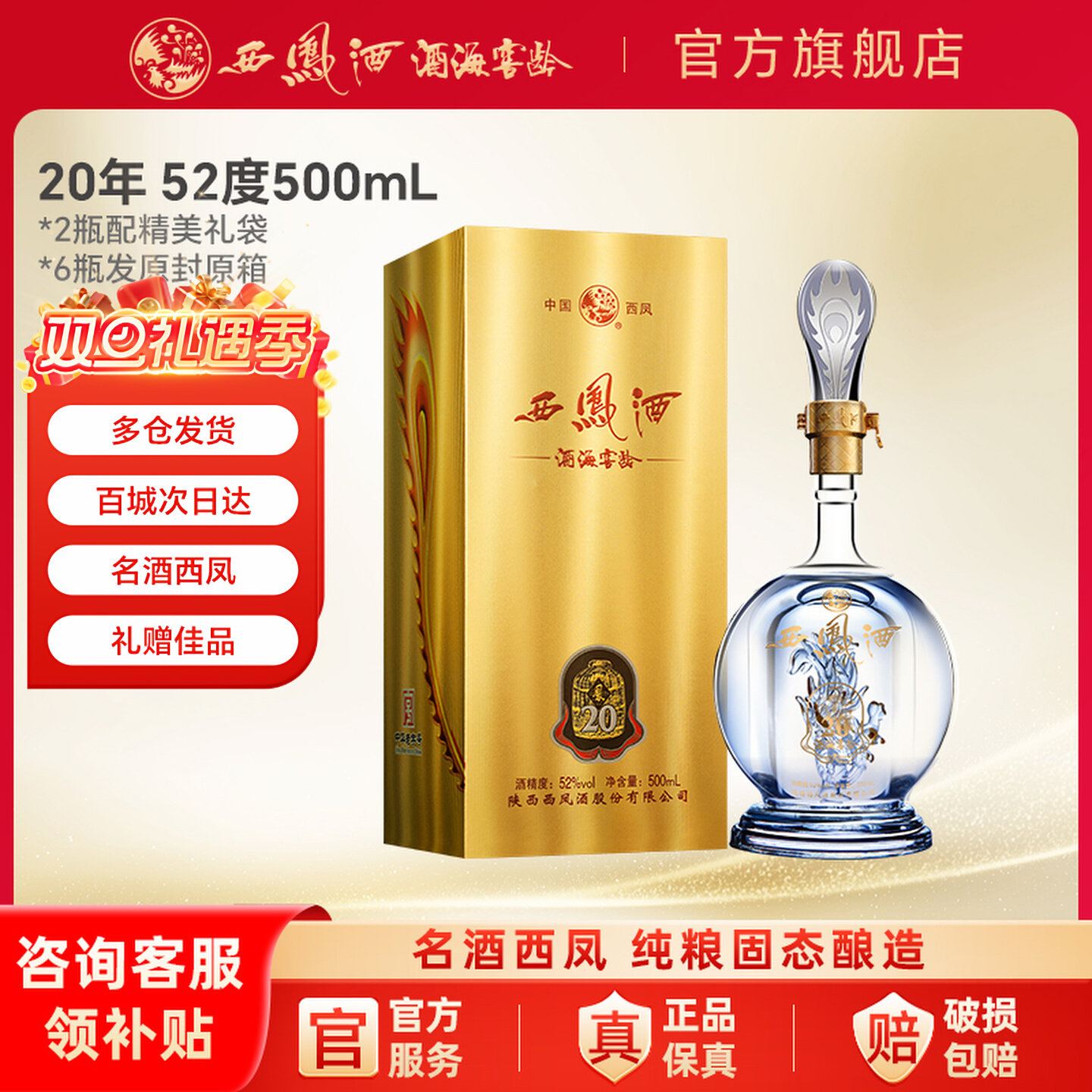 西凤白酒20年品鉴装官方旗舰店整箱年份纯粮食凤香型正品高档