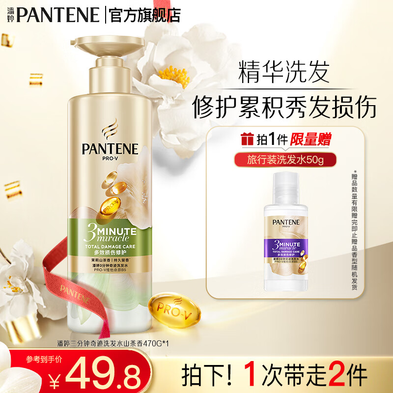 潘婷3分钟奇迹精华滋养洗发水男女士洗发露洗发膏多效损伤修护 【新茉莉山茶香】洗发水470g