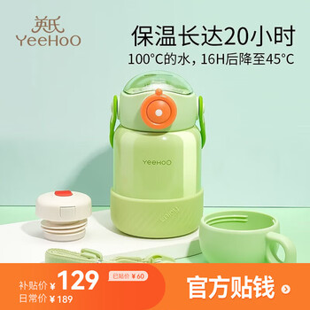 英氏(YEEHOO)保温杯316儿童吸管杯带杯套婴儿保温杯宝宝儿童保温水杯子 苹果绿