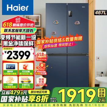海尔(Haier)467L超薄十字四开门多门冰箱一级能效变频双循环三档变温专属母婴空间家用电冰箱 467升|黑金净化|三挡变温空间