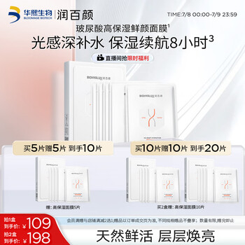 润百颜高保湿鲜颜面膜5片玻尿酸补水提亮护肤品华熙生物【买正送正】
