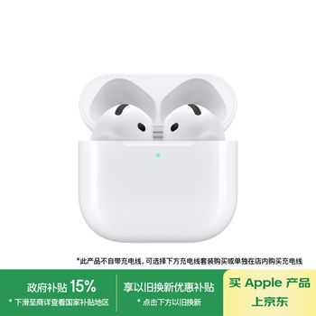 Apple/苹果 AirPods 4(支持主动降噪)搭配无线充电盒(USB-C)苹果耳机 蓝牙耳机适用iPhone/iPad 四代