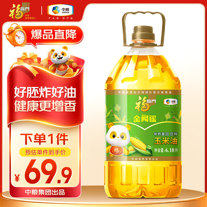 福临门金阙谣 非转基因压榨一级玉米油6.18L 食用油 新老包装随机发货