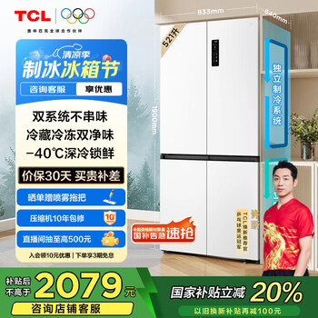 TCL СÇåÄû521ÉýT5Ê®×ÖËÄ¿ªÃÅ˫ϵͳ˫¾»Î¶´óÈÝÁ¿¿í·ù±äαùÏäÒ»¼¶ÄÜЧ¹ú¼Ò²¹Ìù20%·çÀäÎÞ˪R521T5-US