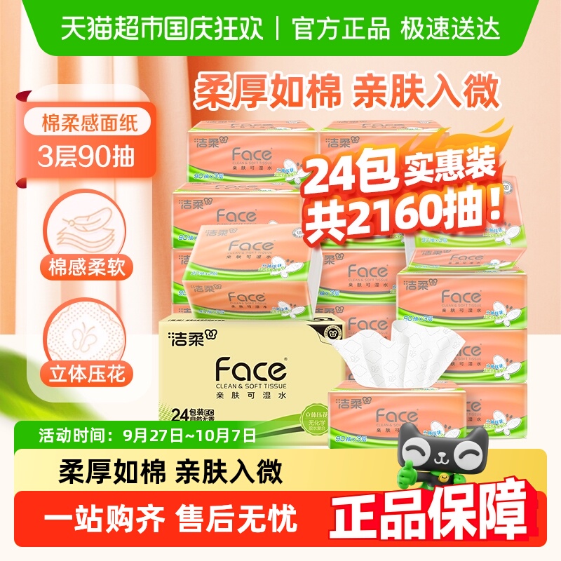 【下拉享优惠】洁柔餐巾纸面巾纸立体压花/滇山茶花软抽纸3层整箱