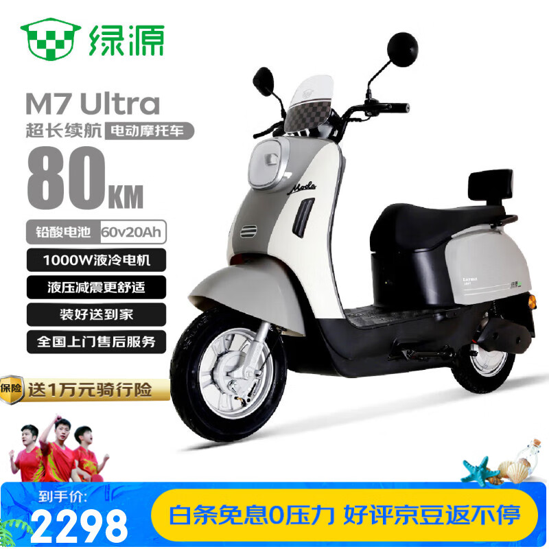 绿源【送装一体】电动摩托车M7ultra【续80公里-60V20AH-5块铅酸电池-1000W】家用长续航代步车 雾状灰