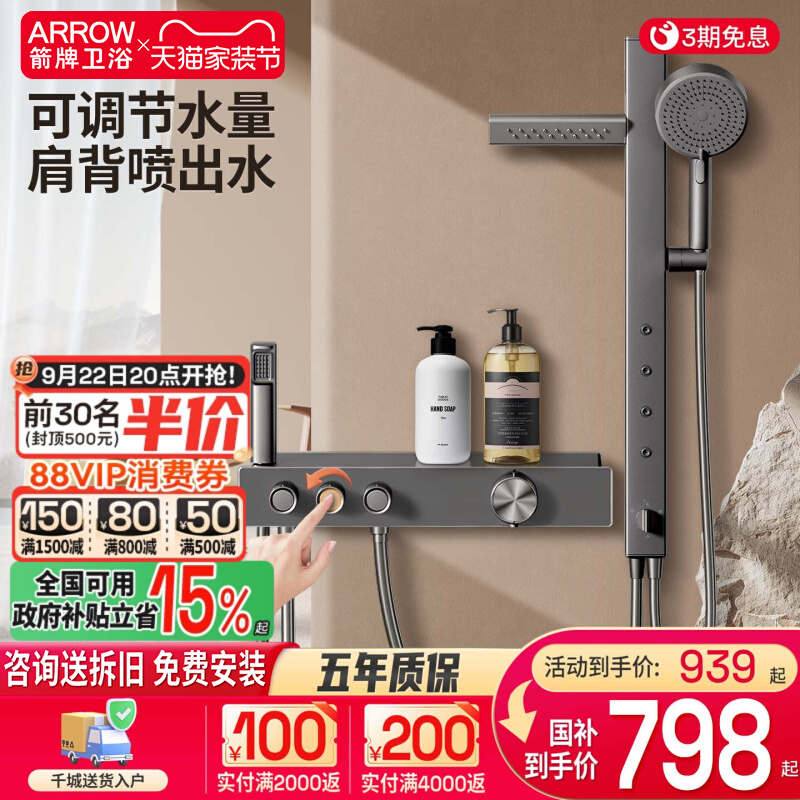 箭牌卫浴枪灰恒温淋浴花洒套装家用浴室钢琴键增压全铜淋浴器喷头