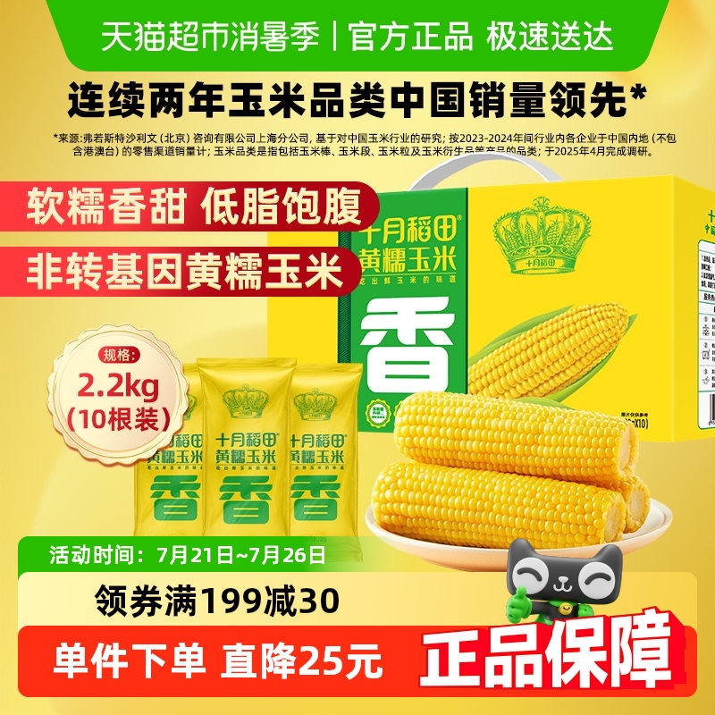 十月稻田鲜食东北黄糯玉米真空精致独立包装