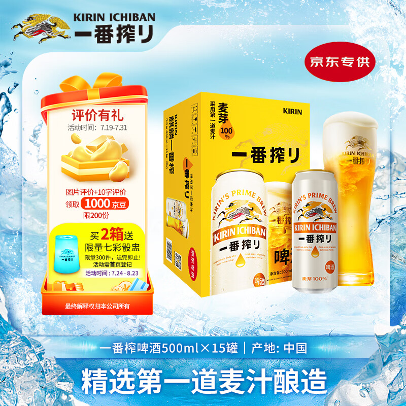 麒麟(Kirin)一番榨 黄啤酒 500ml*15听 整箱装