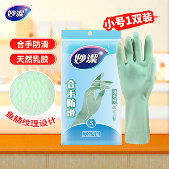 妙洁 清洁洗衣洗碗家务做饭橡胶手套 防水防滑皮厨房 小号(灵巧型)