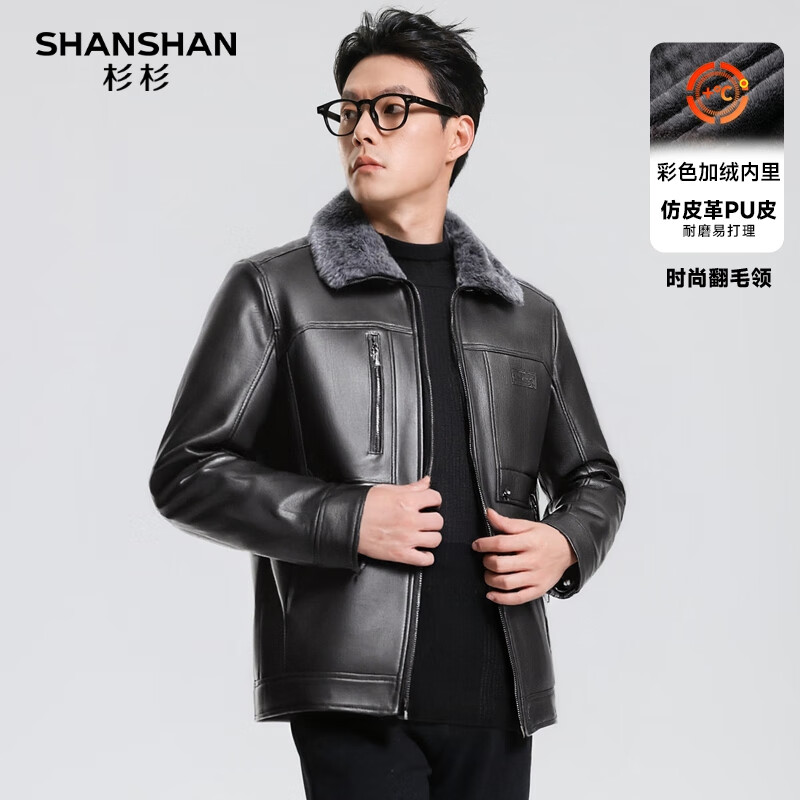 SHANSHAN杉杉皮衣男2025冬季新款加绒加厚保暖休闲百搭男士易打理通勤外套 咖色 2XL /185