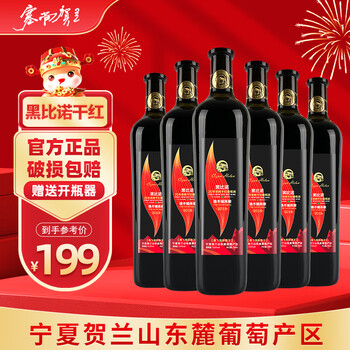 ÈûÉкØÀ¼ ÄþÏÄºì¾Æ ºÚ±Èŵ¸ÉºìÆÏÌѾÆ750ml*6Æ¿ÕûÏä ºØÀ¼É½¶«Â´²úÇø