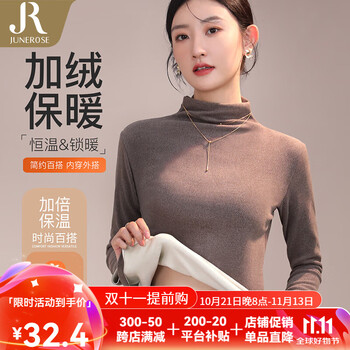 六月玫瑰 新款加绒加厚半高领长袖打底衫女上衣内搭外穿冬季打底衫 摩卡 均码 建议70-140斤